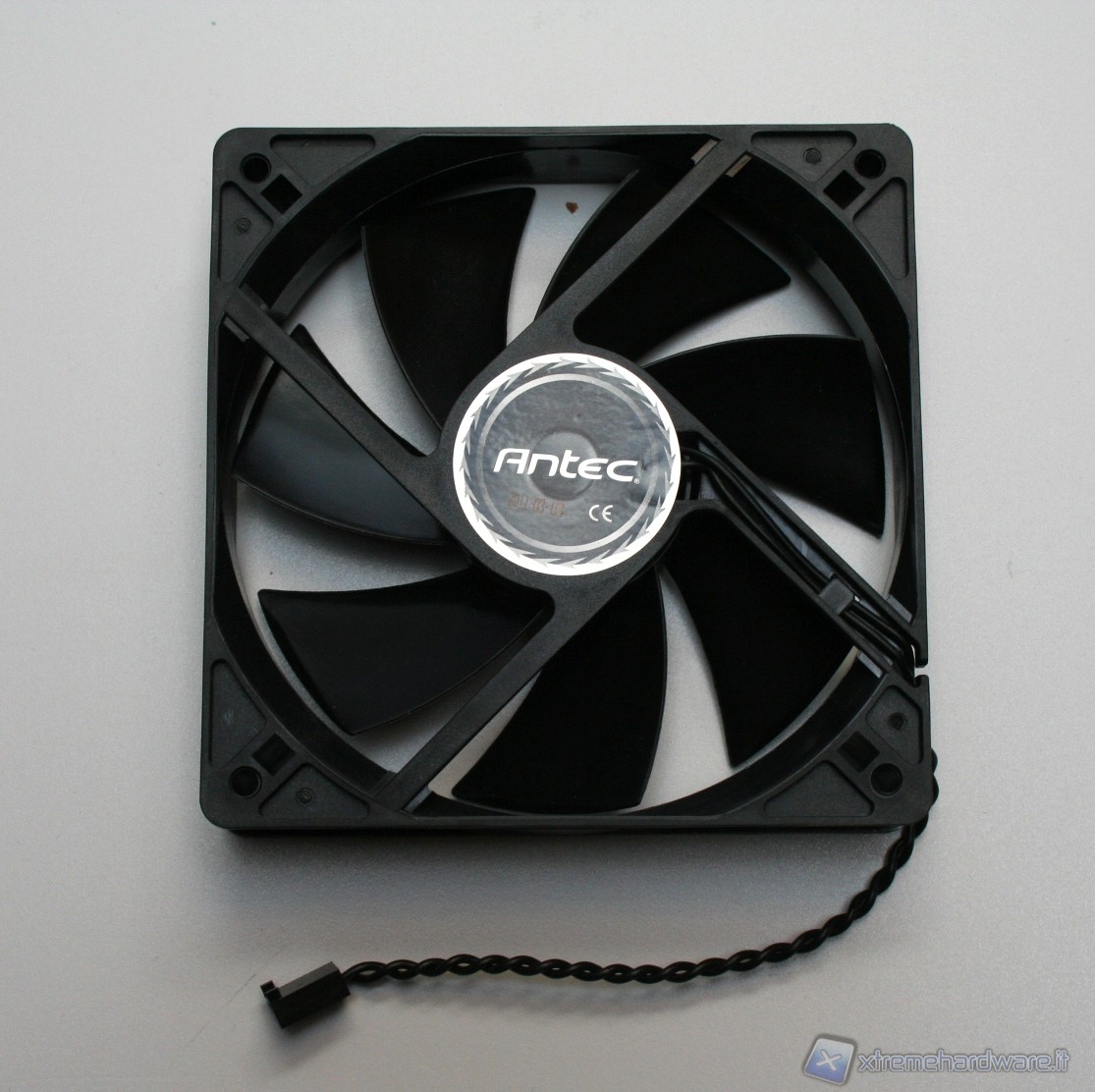 Terminata questa velocissima procedura, posizioniamo il radiatore nella feritoia da 120mm posteriore del case, e inseriamo le prime 4 viti passanti dall’esterno, attraversando la prima ventola per agganciarle al radiatore. Una volta serrate le viti dall’esterno, possiamo inserire internamente una seconda ed ipotetica ventola, e fissarla con le restanti viti. Connettiamo infine il connettore a 3 pin alla scheda madre.